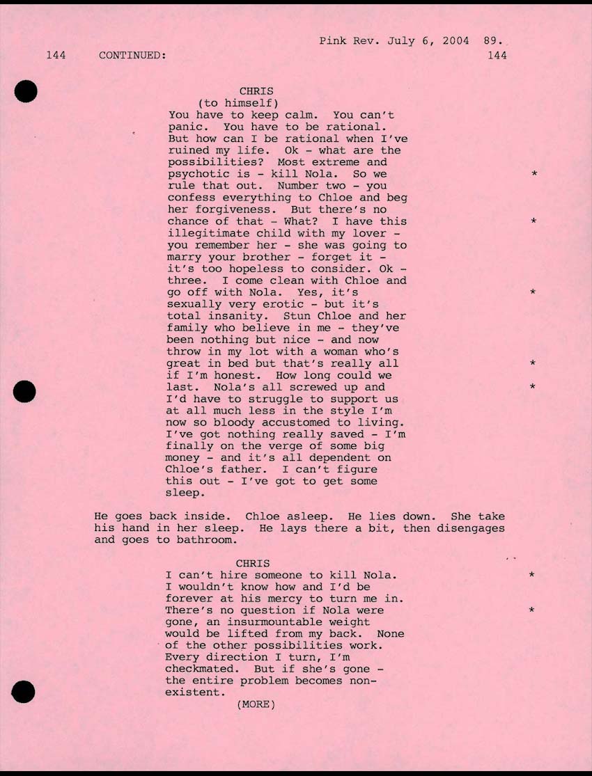 A one-time tennis pro, Chris Wilton (Jonathan Rhys Meyers) was used to falling just short in his life. But when he befriends Tom Hewett (Matthew Goode) and marries his sister, Chloe (Emily Mortimer), the doors are opened to the kind of money and success that Chris had once only dreamed of having. Chris should have settled for happiness, but he is torn by his attraction to Tom's impossibly beautiful and alluring fiancee, Nola (Scarlett Johansson). The attraction turns to an obsession that forces Chris to make a critical choice. Now everything in his life hinges on whether or not Chris falls short again...and if his luck runs out.