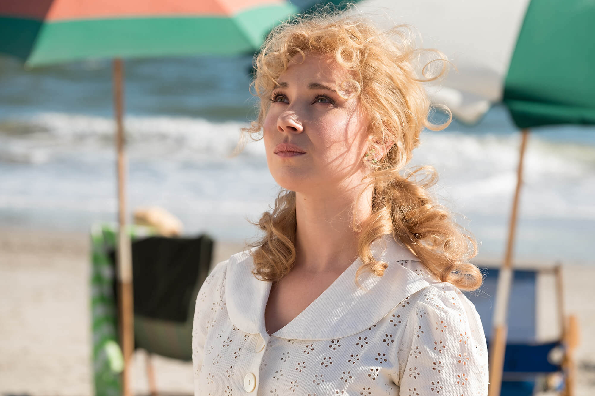 Costume designer Suzy Benzinger had to gather thousands of outfits for the extras, many of them original era garments purchased online or rented, and the rest made. “Every person you see on that beach had three bags of clothing,” she says. “We wanted a lot of clothes on the beach, hanging from umbrellas, because a lot of people couldn’t afford the ten cents to change in the bath houses, so they changed on the beach.” However, it was not easy to coax modern gym- trained women’s bodies into 1950s swimsuits and dresses. “In those days the proportion of waist to hip was really drastic,” says Benzinger. “Today’s women’s muscles are different—they are a bit squarer.” Benzinger had to have the extras wear waist-cinching foundations to provide the right shape under...